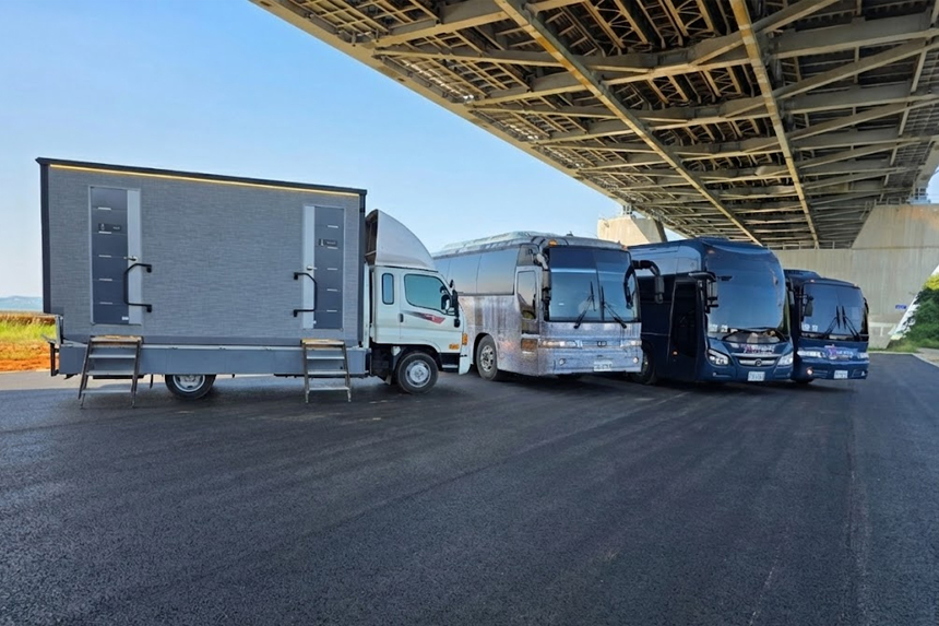 다수 인원이 동시에 이용 가능한 분장버스부터 아티스트 전용 휴게 공간과 이동식 화장실까지 체계적으로 운영하며, 장소와 일정에 구애받지 않는 안정적인 현장 지원을 실현합니다.